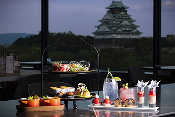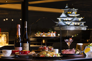 ライトアップされた大阪城を背景に、10種の料理をカクテルと楽しむ、優雅な夜をお過ごしください。