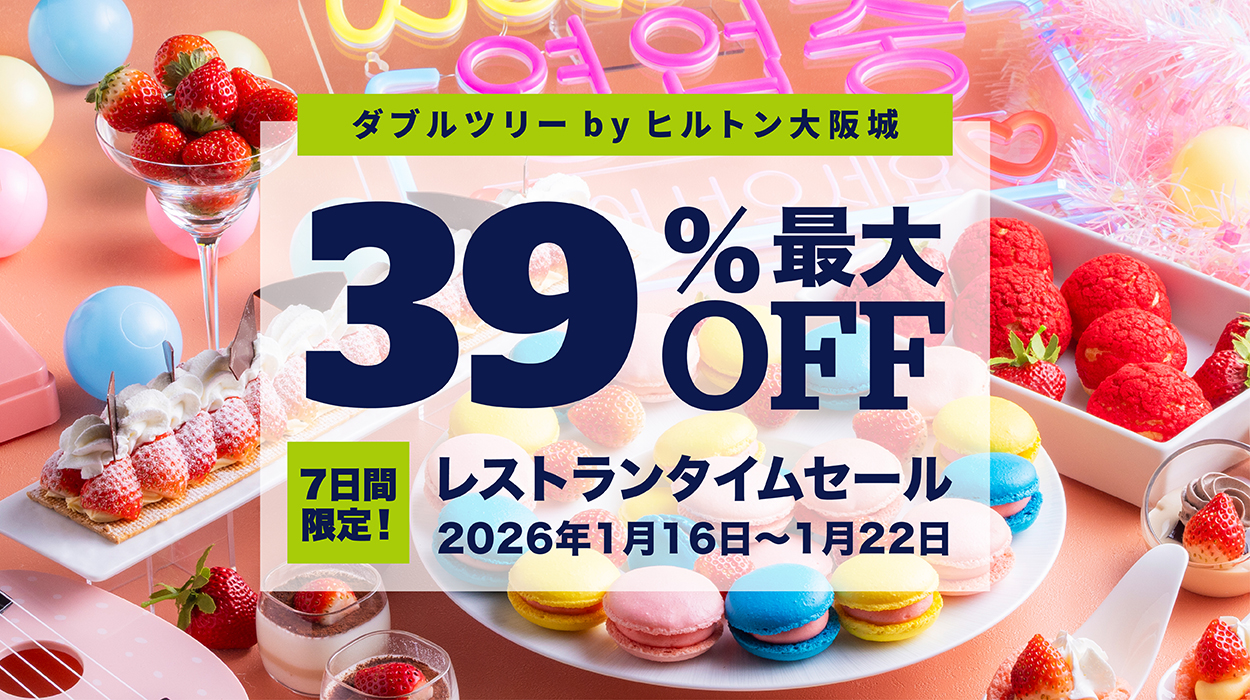 2026年1月16日(金)~2026年1月22日(木)までのご予約で、2026年1月16日(金)から2026年3月15日(日)までのランチ・ディナービュッフェとアフタヌーンティーがお得にお楽しみいただけます。1週間限定のお得なタイムセールをお見逃しなく!